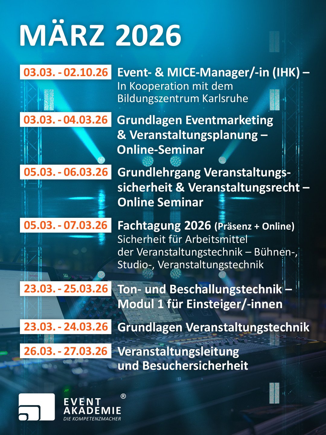 Im März starten an der Event-Akademie neue Kurse, mit denen du dein Wissen auffrischen und deine Skills gezielt erweitern kannst.